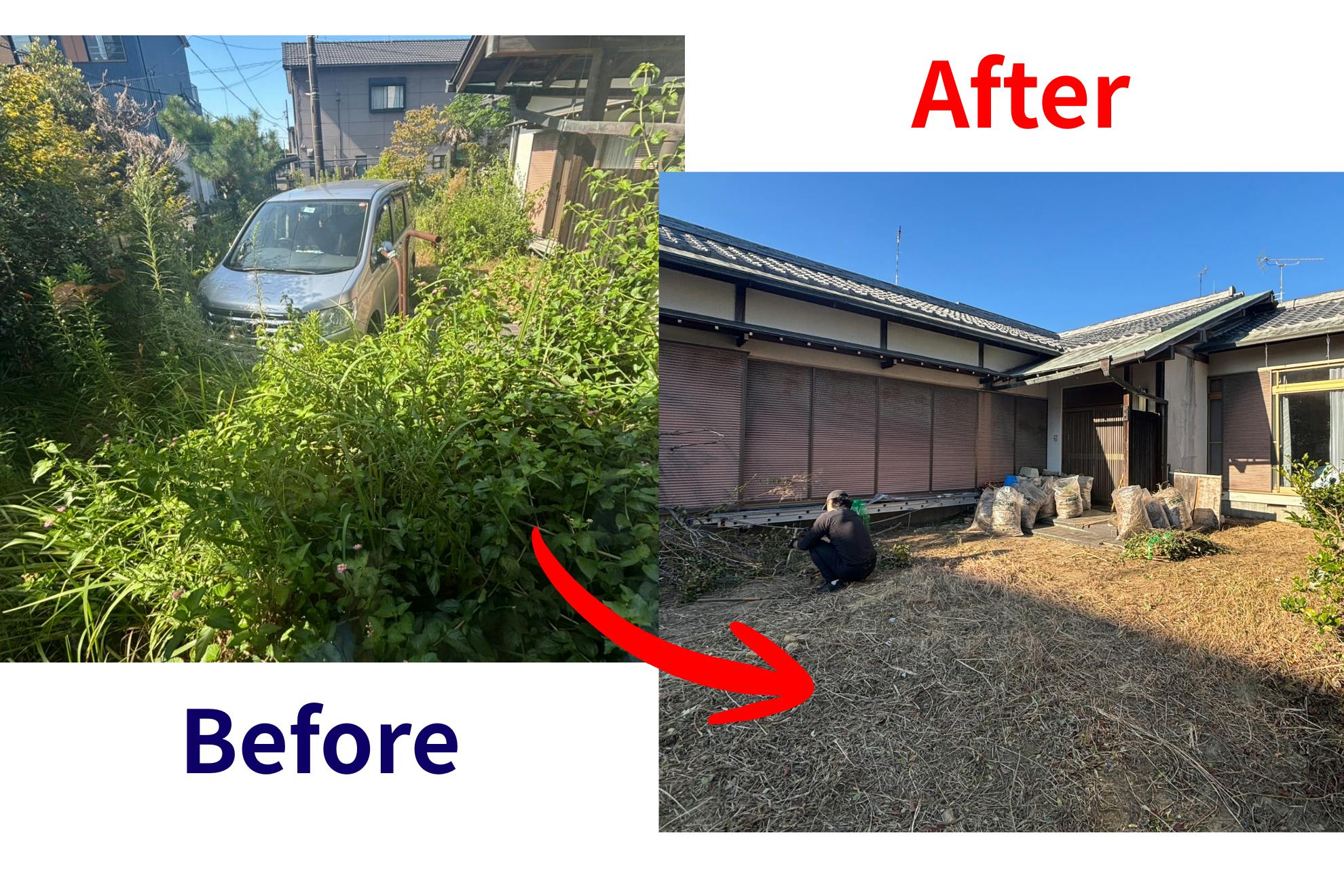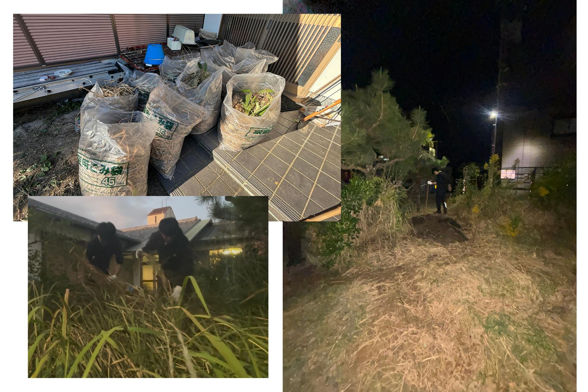 プロジェクト実現に向けて、現在できる限りの準備を進めています。私は神奈川県在住ですが、月に1~2回は片道5時間かけて車で浜松の現地まで通い、家の片付け作業を行っています。長年放置されていた残置物の仕分け・処分や庭の草むしりを少しずつ進め、庭の草はすでに約8割ほど除去することができました。
