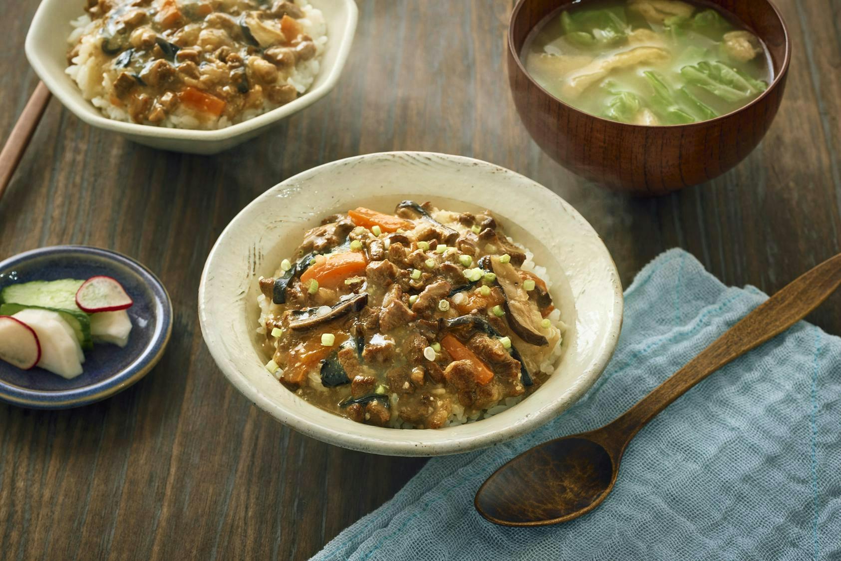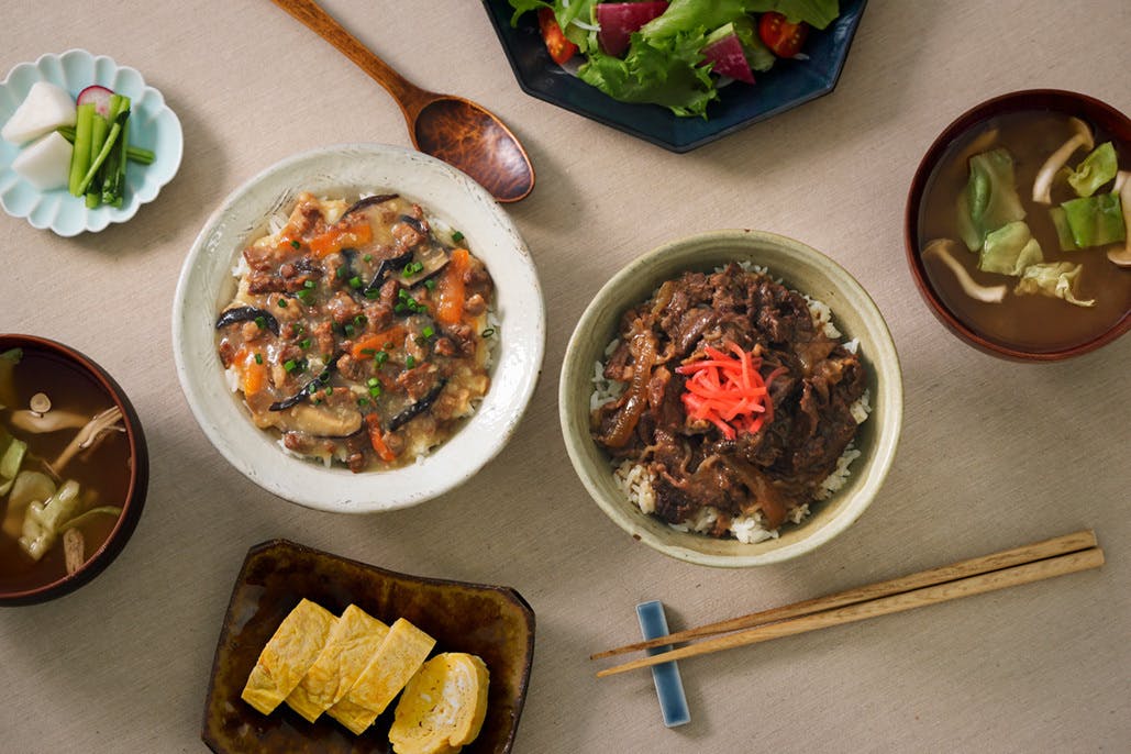 塩麹八宝菜は麺類にかけて、牛丼は野菜を加えて混ぜご飯にするなど、