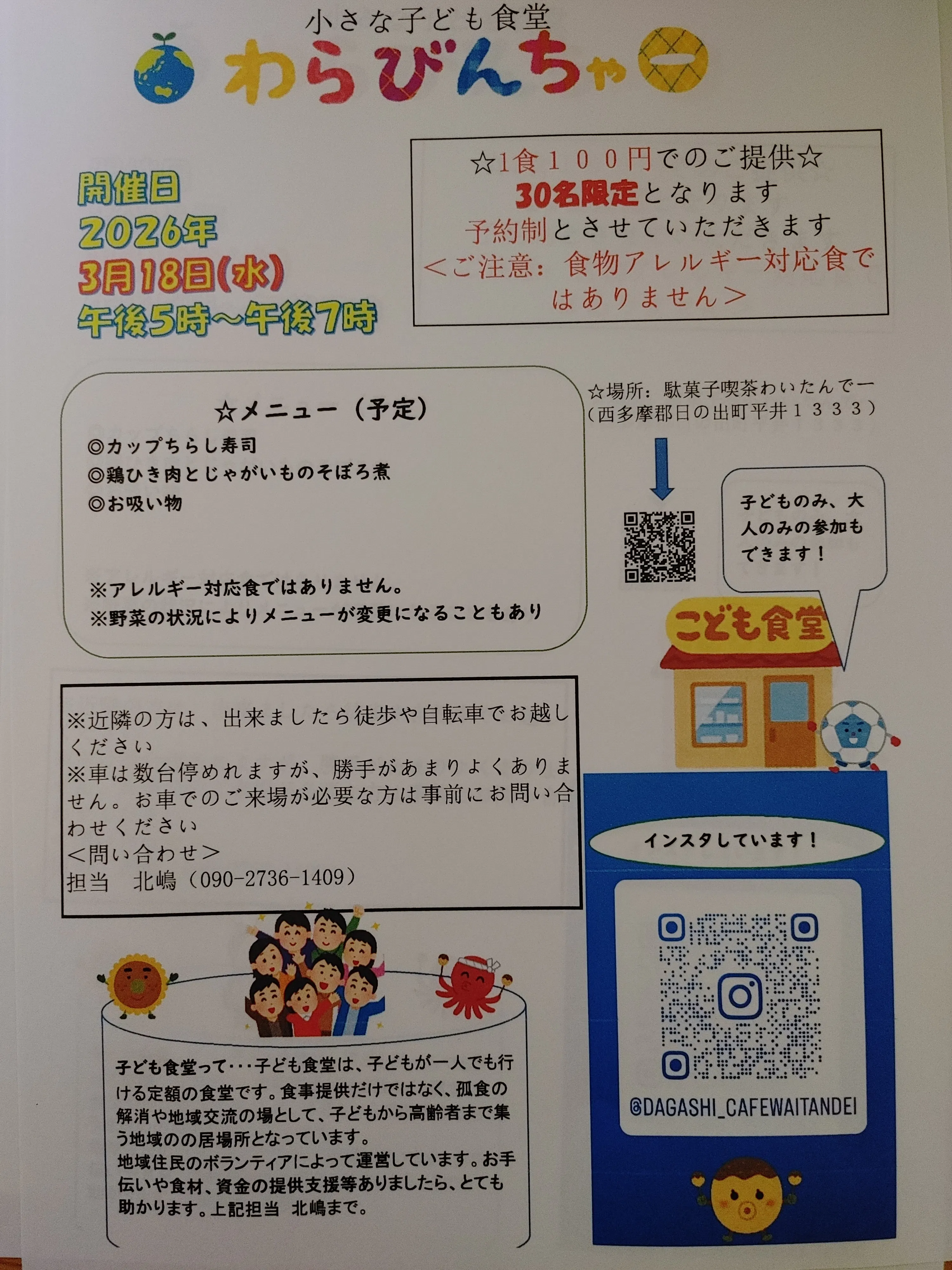 2026/03/17 22:10子ども達の居場所作りの1つとしての「小さな子ども食堂わらびんちゃー」明日開催日です!今回も満員御礼!定員以上の御予約が!!子ども食堂もこれで12回目となり、少しずつこの場所が地域に周知されるようになってきました! もっと見る