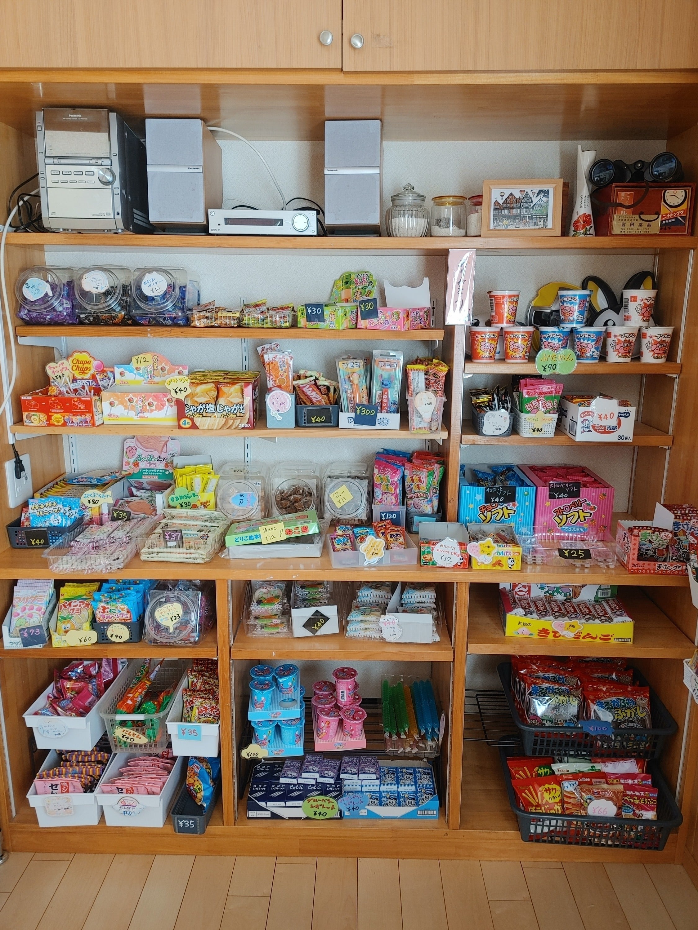 お店はただ駄菓子を楽しむ場所ではなく、心温まる交流の場として、子どもから大人まで幅広い世代の方々にご利用いただいています。喫茶としては、果物と畑でとれた野菜を混ぜ合わせたドリンクやコーヒー、季節のお楽しみ(現在はやきいも)、たこせん、パンケーキ各種も楽しめます。また、子ども食堂も開催しており、地域の親子、小学生、一人暮らしの高齢の方が来ております。私が地域のスポーツ推進委員をしていること、以前、消防団をしていたこともあり、日の出町の社協や役場にも広告の協力もしていただき、また、放課後等デイサービスの管理者をしていたので、障がい者就労生活支援センターとも連携を取り、地域の居場所の一つとして利用していただけるように日々奮闘しています。この場所が地域の子ども達から大人にとって欠かせない存在となることを目指しています。