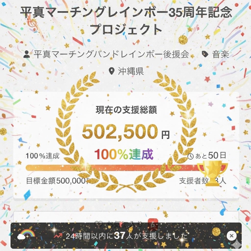 「平真マーチングバンドレインボー」の音色をより遠くへ、そして子どもたちの練習環境をさらに充実させるため、【ネクストゴール:100万円】という新たな目標を掲げることを決意いたしました!