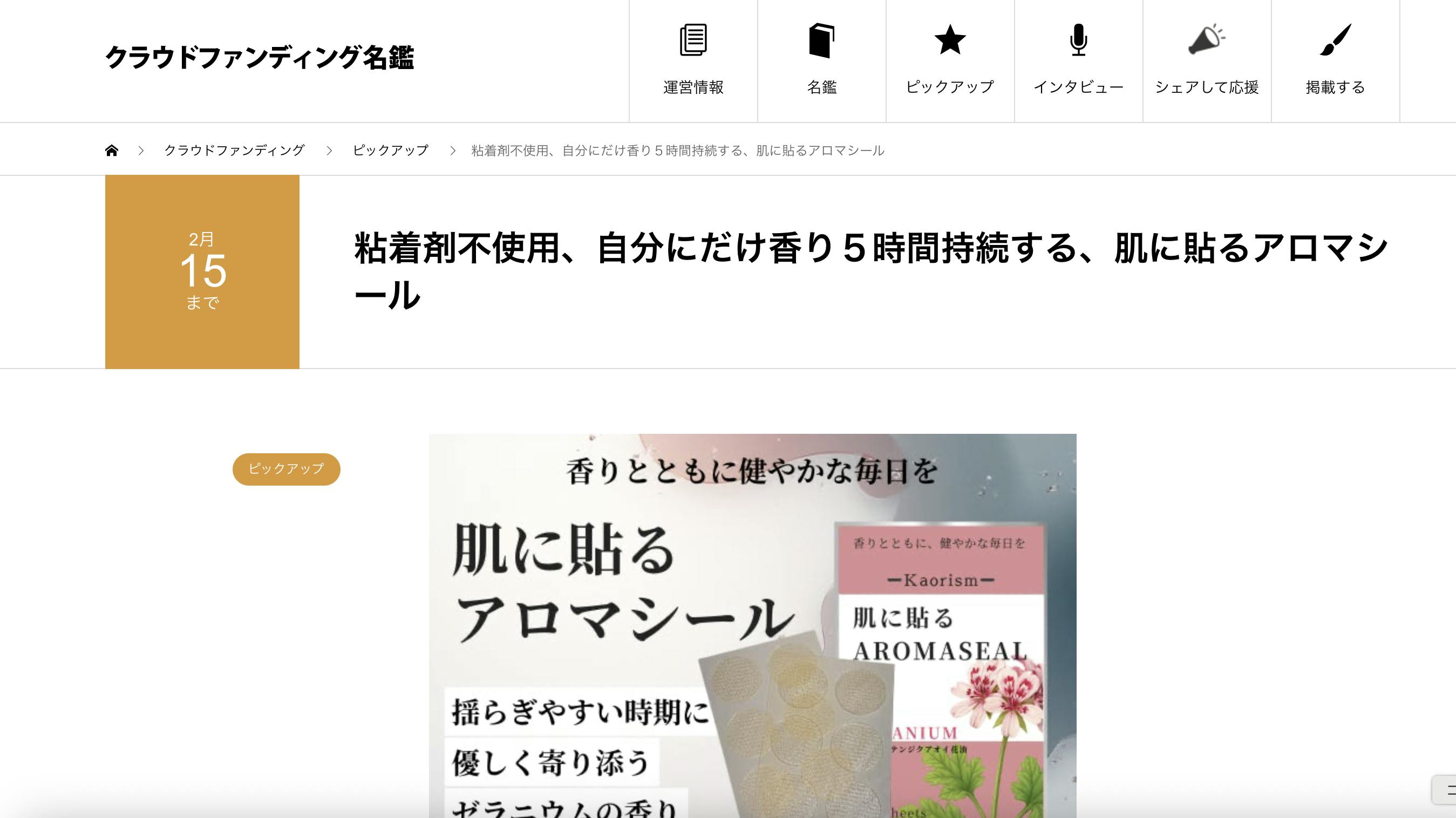 粘着剤不使用、自分にだけ香り5時間持続する、肌に貼るアロマシール | クラウドファンディング名鑑
