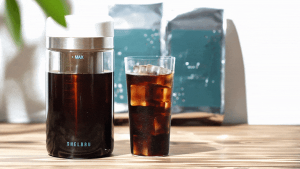 SHELBRUは水と粗挽きまたは中粗挽きのお気に入りのコーヒー豆を入れて1日冷蔵または常温保存するだけ。