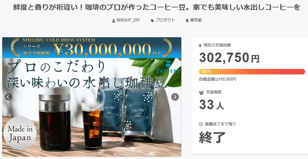 2026/03/01 11:24ご支援者様、鮮度と香りが桁違い!珈琲のプロが作ったコーヒー豆。家でも美味しい水出しコーヒーをにご興味をお持ちいただきありがとうございます。プロジェクト開始から38日目で33人ものご支援者の方々より支援頂き、無事プロジェクト終了を迎えることが出来ました。早速皆様のリターンを2026年05月末にお届けできるよう準備を始めております!皆様にご満足いただけるリターンをお届けできるよう、全力で取り組んで参りますので引き続き、「鮮度と香りが桁違い!珈琲のプロが作ったコーヒー豆。家でも美味しい水出しコーヒーを」をよろしくお願い致します。BRIGHTチーム もっと見る
