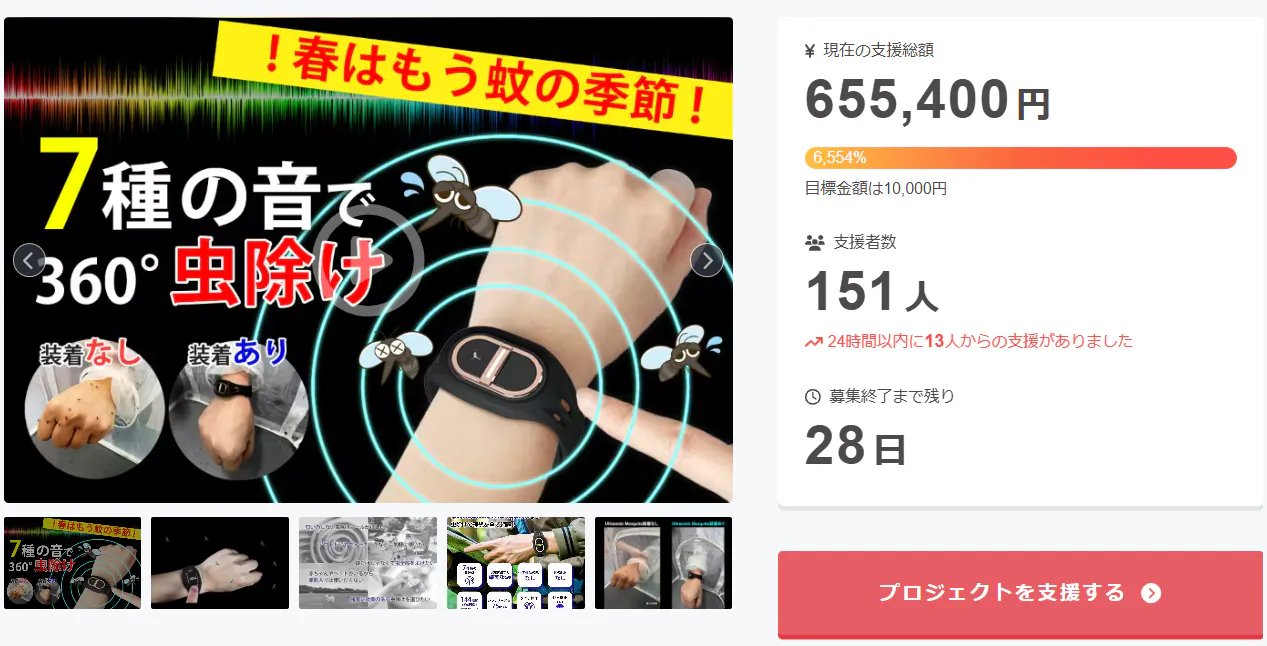 2026/04/02 12:01この度は「春はもう蚊の季節!赤ちゃんやペットにも使える、7種の音波で全方位虫よけバンド」に支援頂き誠にありがとうございます!お陰様で、支援総額60万円達成することができました。ご興味のある方、ぜひ支援お願い致します。https://camp-fire.jp/projects/911818/viewBrightチームは、当プロジェクトをもっと多くの方に知っていただきたいと考えております。よかったら、FacebookやTwitter等のSNSでのシェア・拡散をお願い致します。#brightdiyどうぞよろしくお願い致します。Brightチーム もっと見る