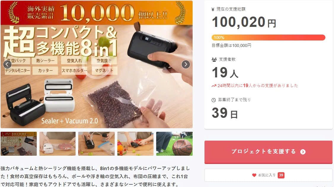 この度は「Sumhen Sealer Vacuum 2.0」に支援頂き誠にありがとうございます!