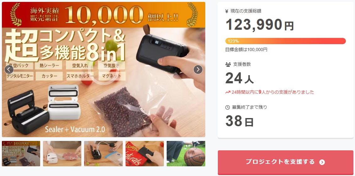 この度は「累計出荷数1万個◎真空パックできて液体保存も可能!超コンパクトな8in1シーラー」を支援いただき、本当にありがとうございます。
