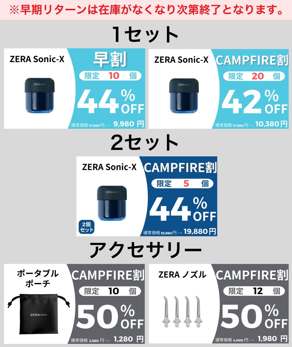 ※早期リターンは在庫がなくなり次第終了となります。