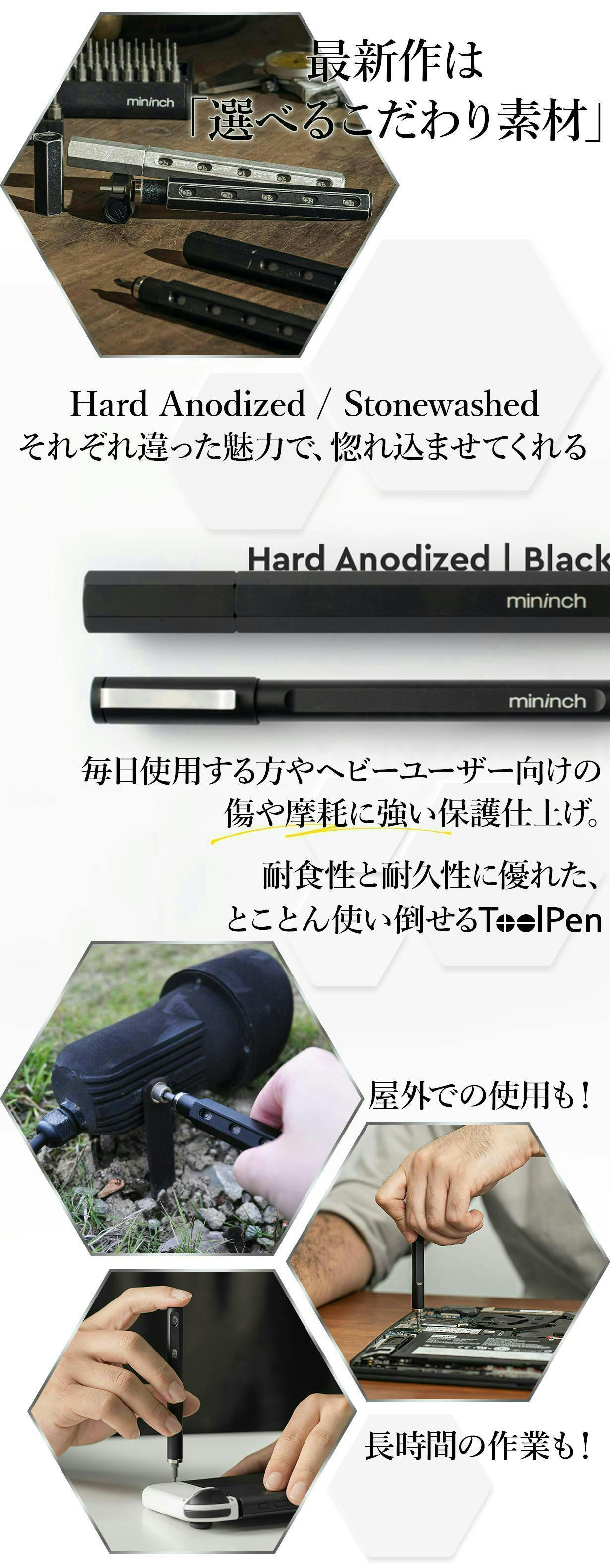 mininchの新しいアルミドライバーシリーズは、プロフェッショナルな作業から日常の修理まで幅広く活躍すること間違いなし。ハードアノダイズドとストーンウォッシュの2つの仕様から、自分のスタイルに合わせて選ぶ楽しみもあります。デザインと実用性を兼ね備えたこの新製品は、ツール愛好者やDIYユーザーにとって待望のアイテムと言えるでしょう。