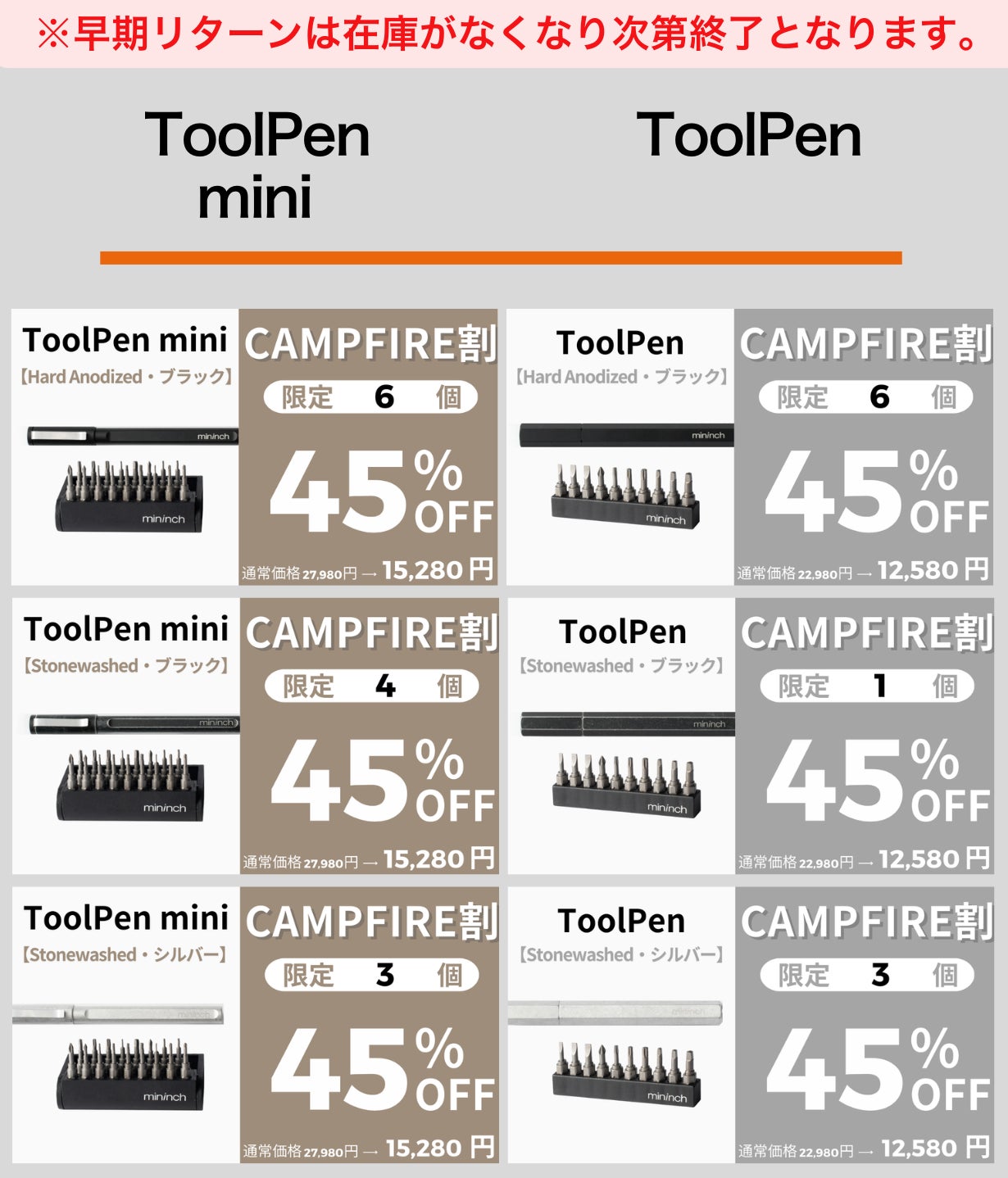 ・mininch ToolPen/ToolPen miniをより多くの方に知っていただくためのプロモーション費用