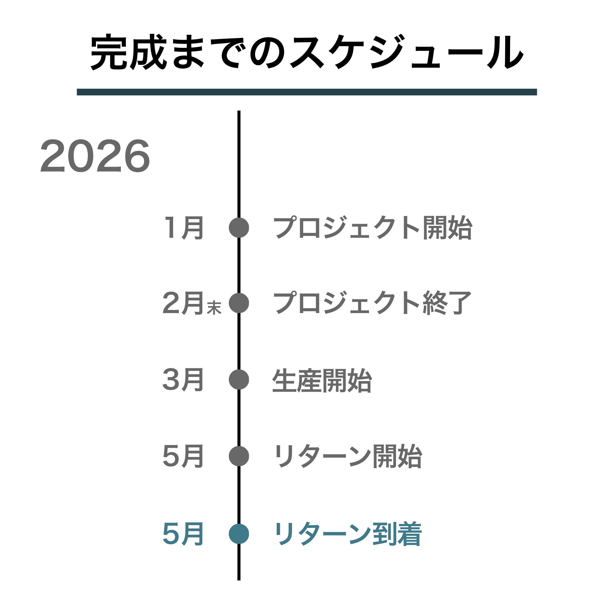 ※本文中に記載させていただいたスケジュールは、あくまでプロジェクト公開時点の予定です。クラウドファンディングを経て輸入を行う性質上、配送遅延のおそれがございます。
