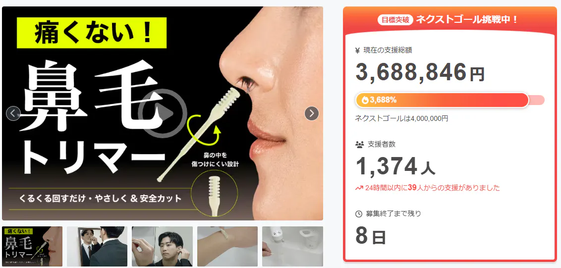 この度は「【一生モノの鼻毛カッター】鏡を見ずに1秒。もう抜かない、痛くない鼻毛処理の最終形」に支援頂き誠にありがとうございます!