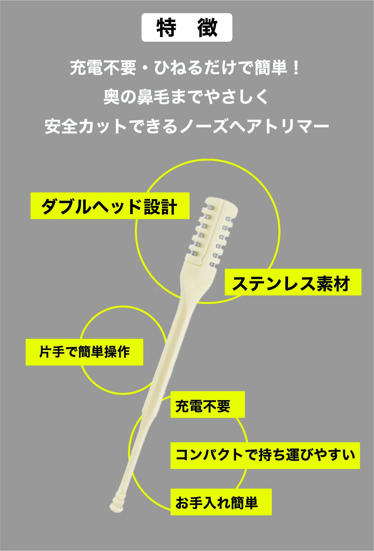 鼻毛はもちろん、眉毛や細かな産毛にも使えて、これ1本で毎日の身だしなみケアがすっきり完結します!