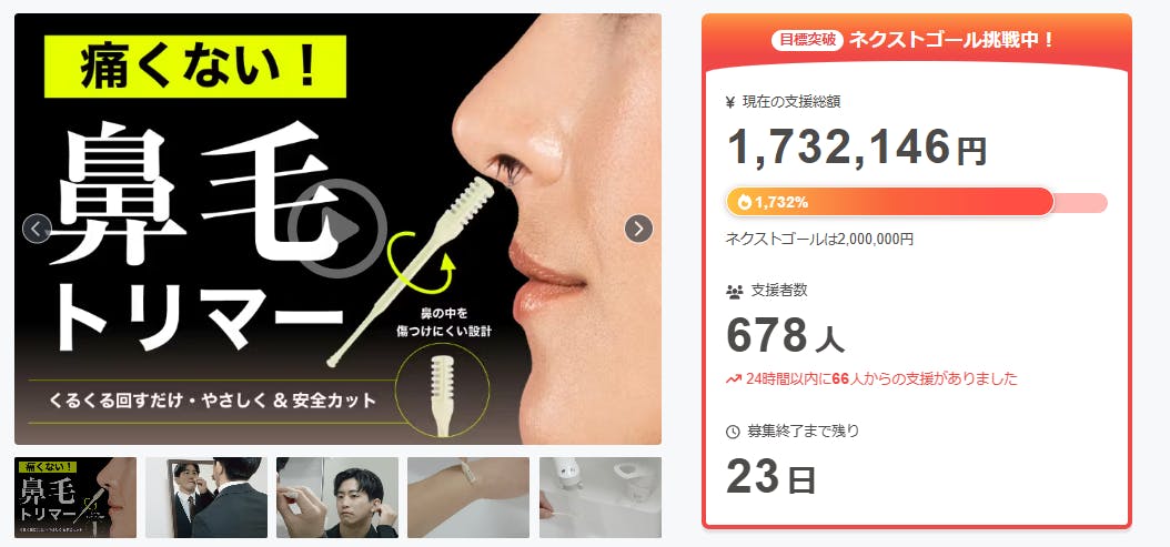 2026/03/06 11:58この度は「【一生モノの鼻毛カッター】鏡を見ずに1秒。もう抜かない、痛くない鼻毛処理の最終形」を支援いただき、本当にありがとうございます。おかげさまで開始から40分で目標を達成することが出来ましたまた本日のCamfireランキングプロダクト部門で 1 位に入賞することが出来ました!手軽さと清潔さを両立した設計で、忙しい毎日でも快適に使い続けられます。3月末旬まで販売期間は続きますので、ぜひSNSでのシェアや身近な方にもおすすめしていただけると嬉しく思います。https://camp-fire.jp/projects/911826/viewどうぞよろしくお願いいたします。ありがとうございました。スタッフ一同Brightチーム もっと見る