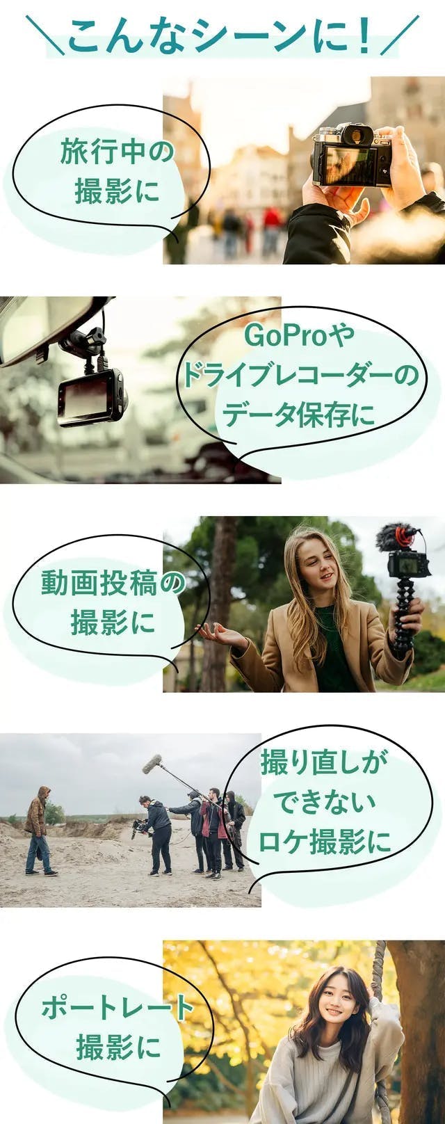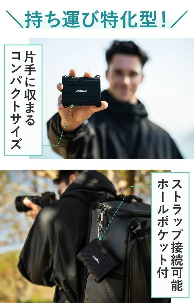 コンパクトで持ち運びやすく耐久性も高い、そして撮影後すぐにバックアップが取れる高速読み込みや多数の便利機能に「これだ!」と確信しました。