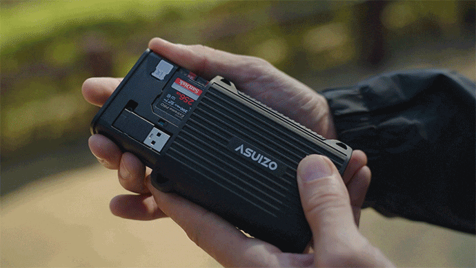 A:ケース外側には衝撃吸収のためのシリコン製シェル、耐久性のあるアルミニウム合金製のケース、ほこりや湿気を防ぐシーリングリングで多層保護し、精密設計のカードスロットで移動時のズレから守ります。