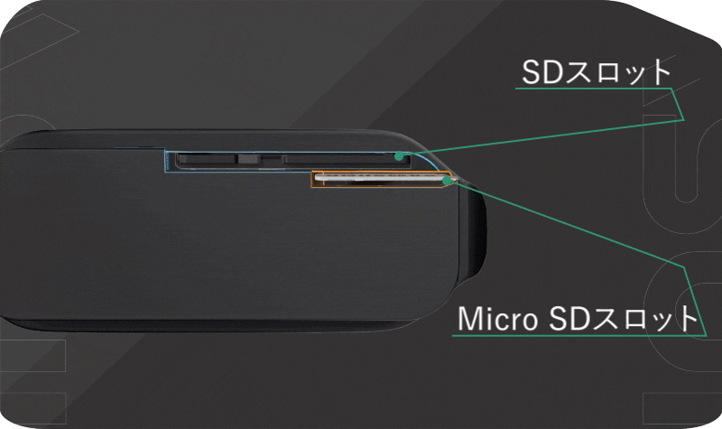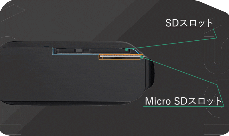 SDカードを入れたままMicro SDもスムーズに取り出せる工夫を凝らしたデザインで、スムーズに使用でき撮影に集中できます。
