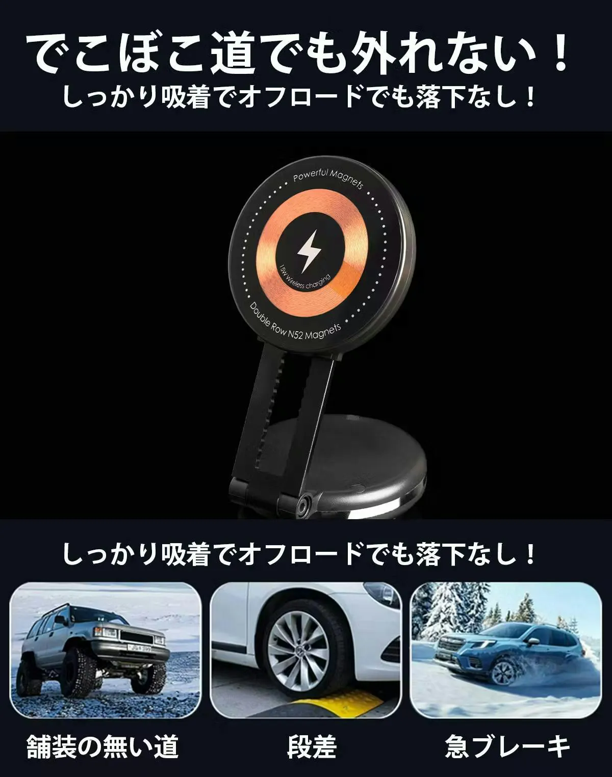現在数多くの車用スマホホルダーがありますが、ワンタッチや片手で手軽に脱着できる上に揺れなどで外れにくい・柔軟な角度調整ができる・固定したままワイヤレス充電ができるという嬉しい3拍子が揃ったものはなかなかないのではないでしょうか。