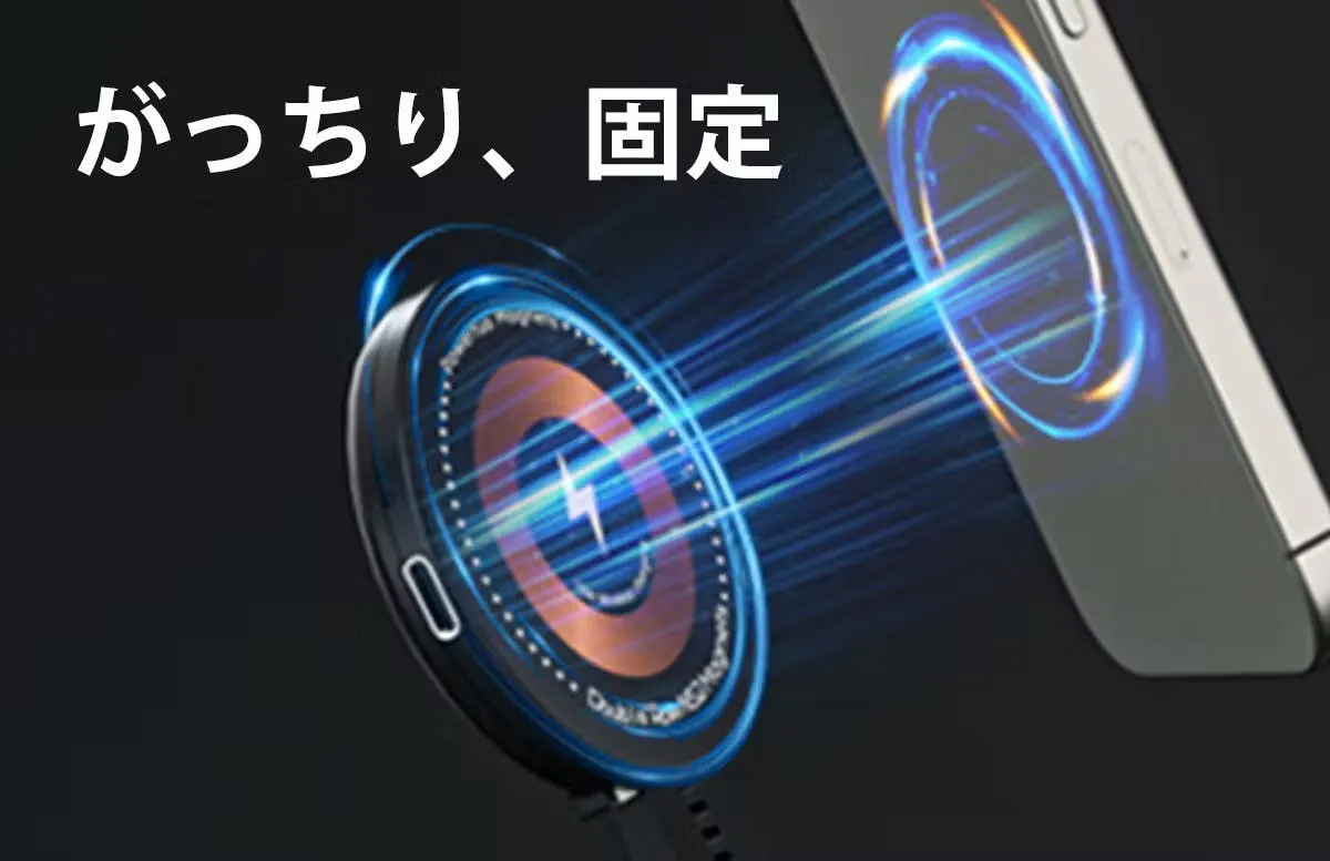ホルダーに固定したまま最大で15Wのワイヤレス充電が可能。