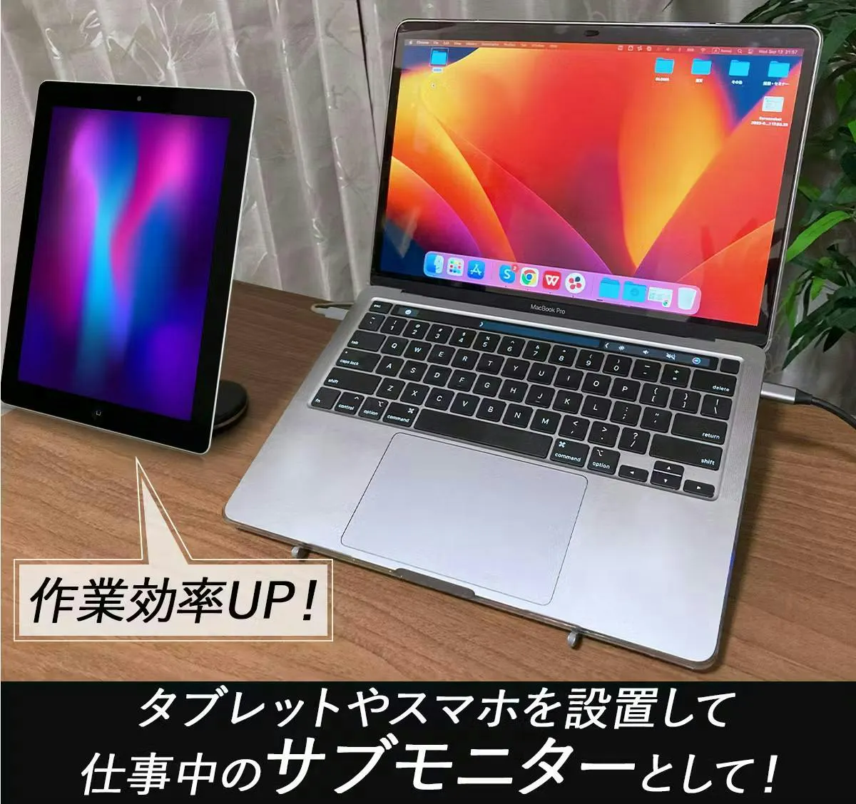 仕事用デスクに固定して充電しながらサブウィンドウとしても!