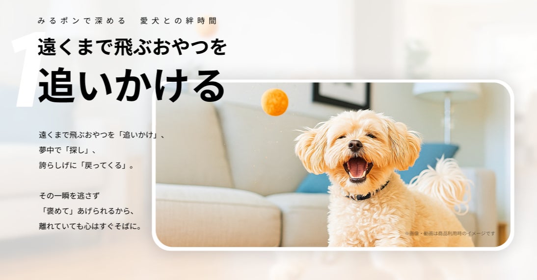 遠隔カメラで見守るだけでは埋められないその“距離”を、「共に楽しめる体験」を通じ、少しでも近づける。「みるポン」は、そうした「愛犬ともっと時間を共有したい」と願う愛犬家の願いから生まれたプロダクトです。
