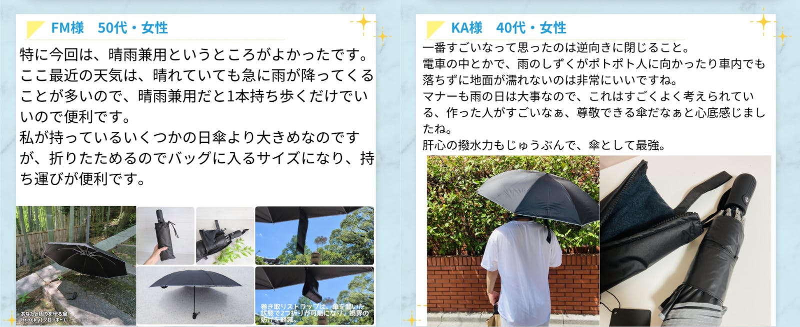 「brocky」を使えば、雨の日でも快適に過ごせるはずです。気分が明るくなれば、雨の日の通勤や外出も少し楽しくなるのではないでしょうか?