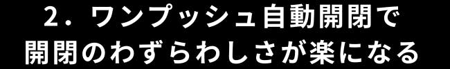 大切な書類などで手がふさがっていても、片手ワンプッシュで傘を開くのみ。濡れるという不快感を減らしてくれます。