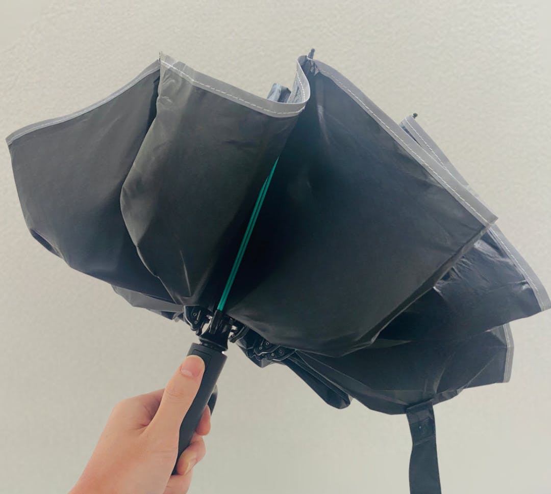 通常の傘は濡れた部分が外側になりますが、逆折りたたみ式にすることで濡れた部分を内側に。