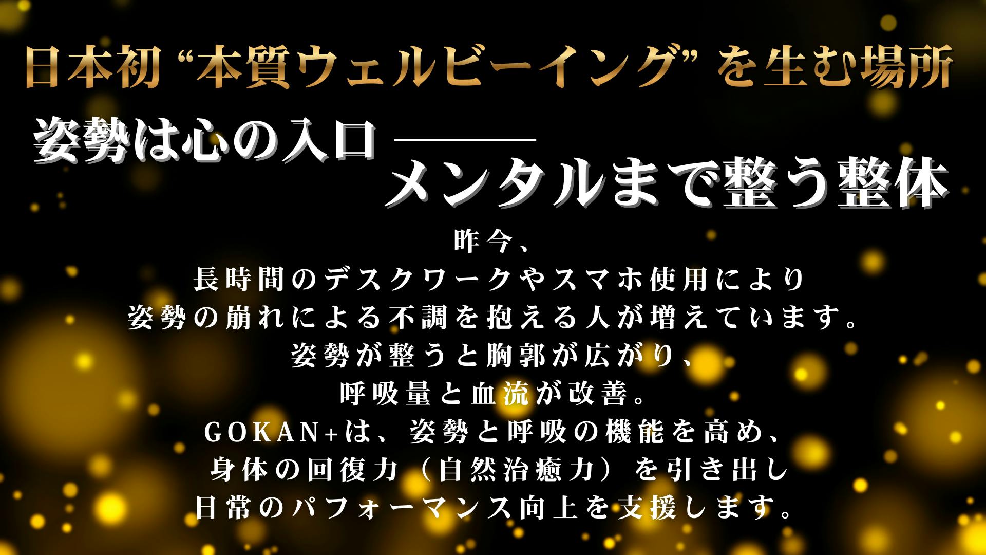 GOKAN+では、 整体 × トレーニング × 五感・神経アプローチを融合した独自メソッドを確立しています。