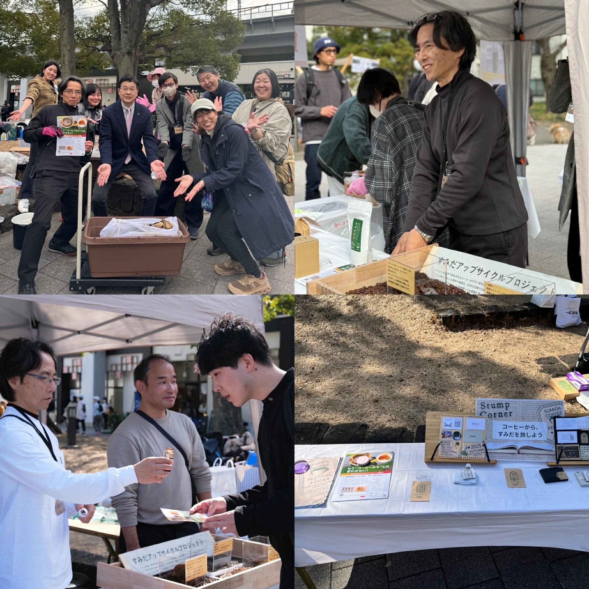 フェスの初日には墨田区の山本区長さんも激励に訪れてくださりました。その際に、珈琲残渣(かす)のアップサイクルの重要性を、強く、強く、強く、訴求しておきました。