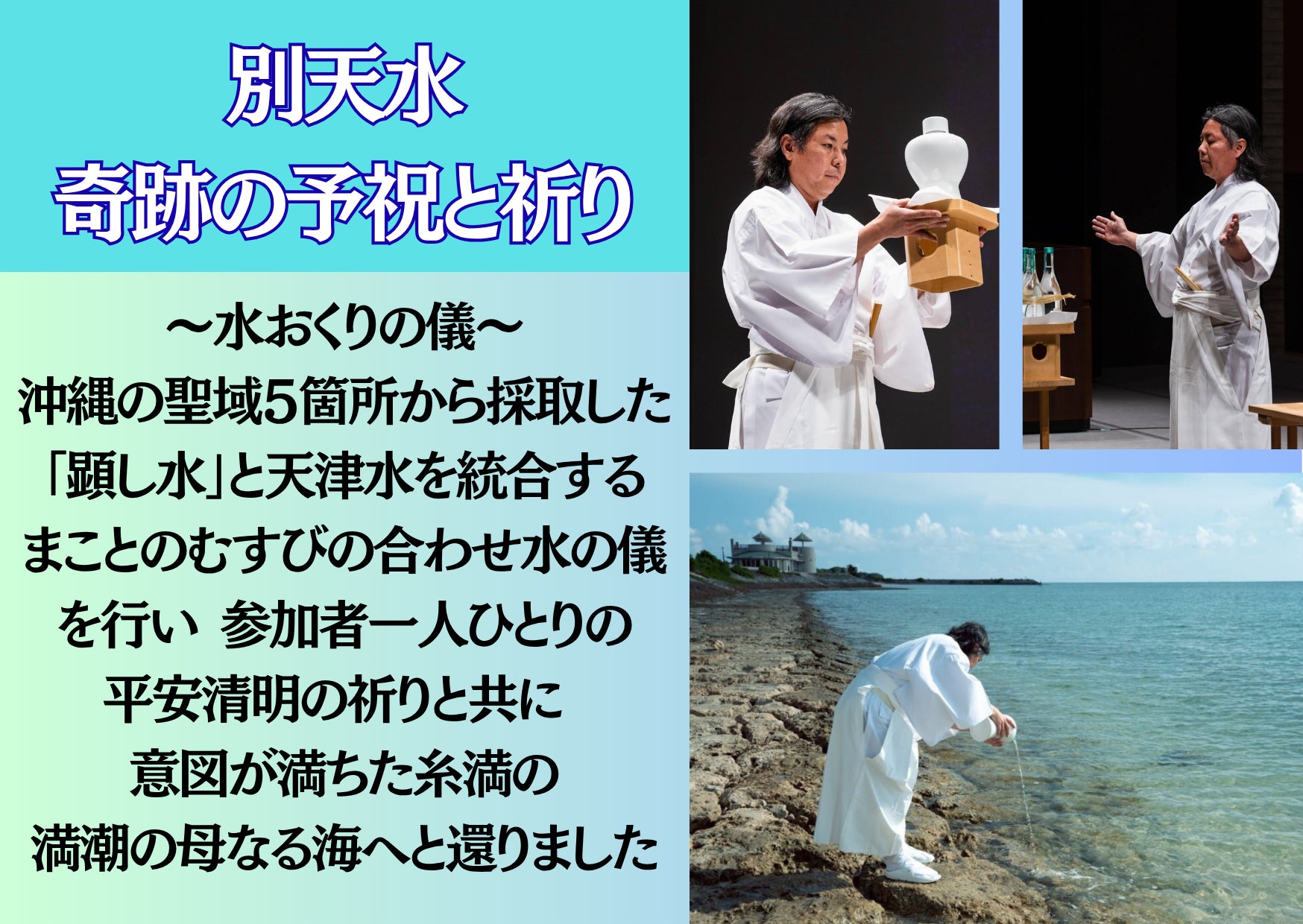 日本の聖域で祈り合わせた水と沖縄で祈り合わせた水とを統合し、そこに平安清明の祈りを吹き込み統合された水を沖縄の海から世界へ解き放ちました。