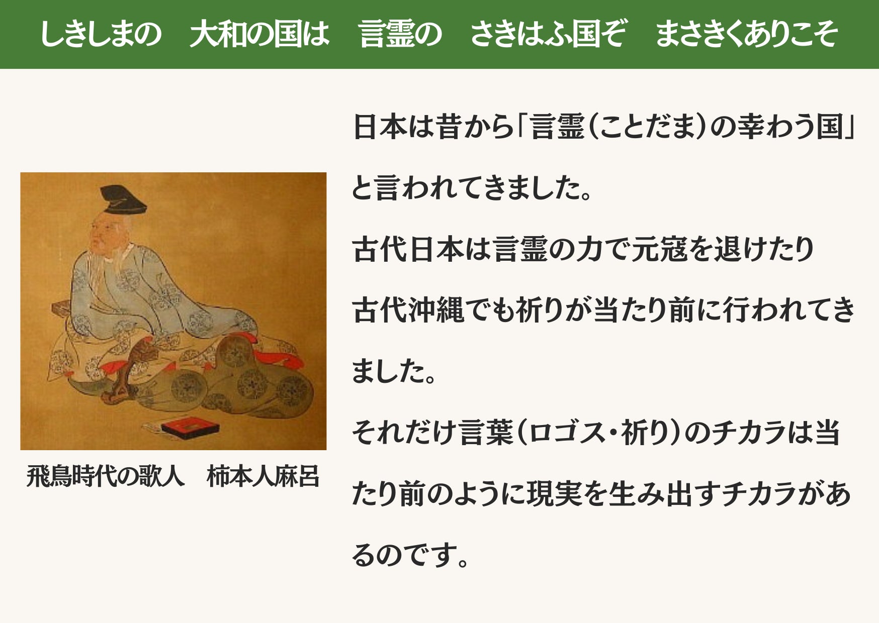 日本は昔から「言霊(ことだま)の幸わう国」と言われてきました。