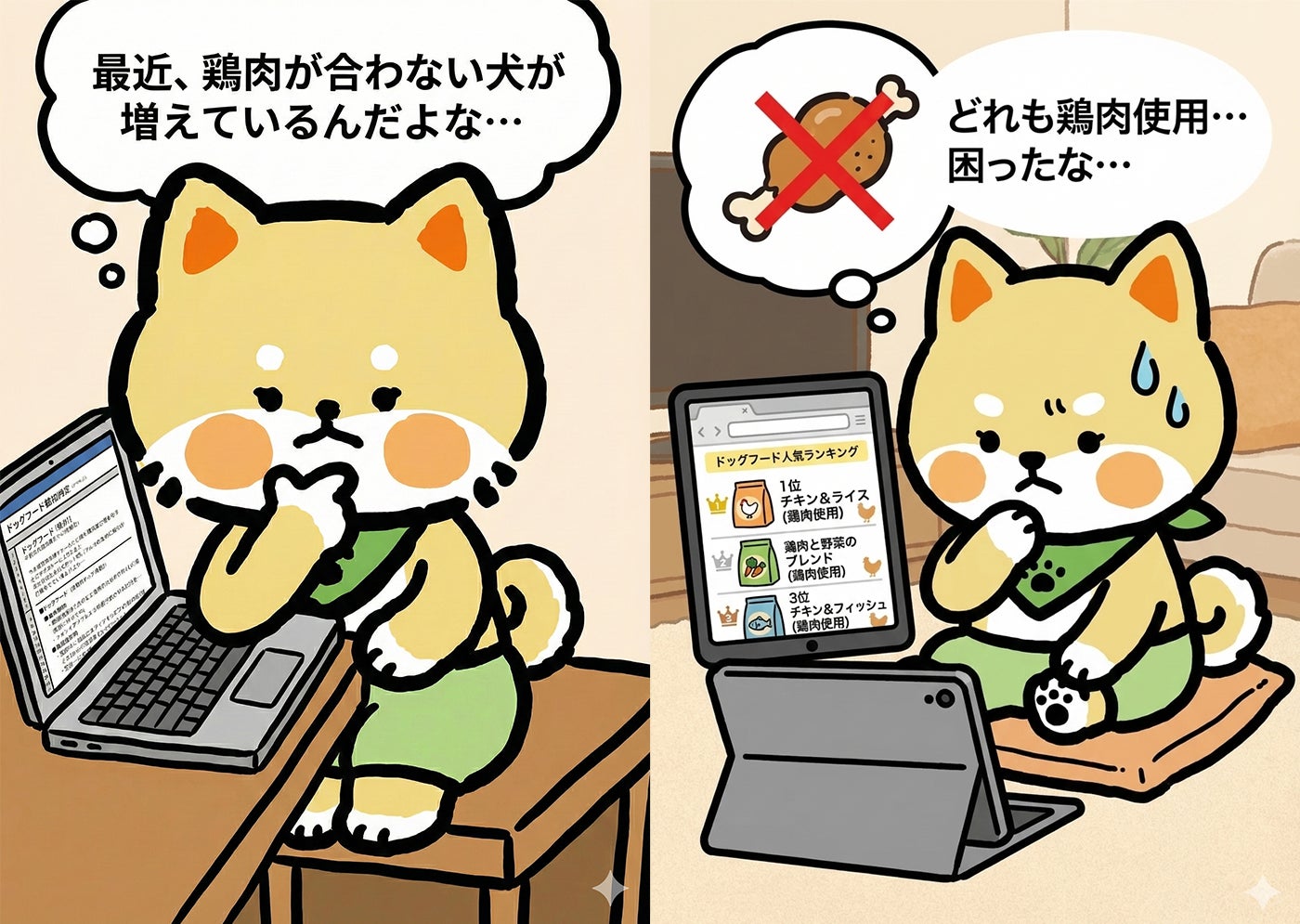 しかし、「鳥肉を使っていないフード」は、探してみると驚くほど選択肢が少ないのが現状です。