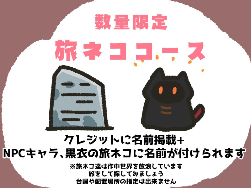 作中の雰囲気を優先したいので、旅ネコのお名前はカタカナ10字以内でお願いします