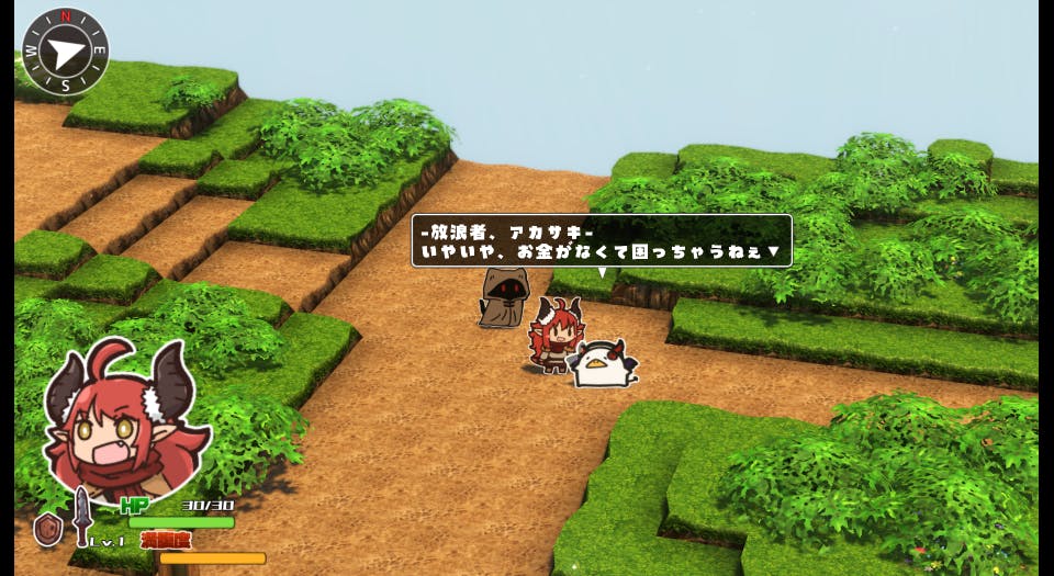 本作は、2.5Dの世界と、可愛いイラストで描かれる、シンボルエンカウント式のファンタジーRPGです