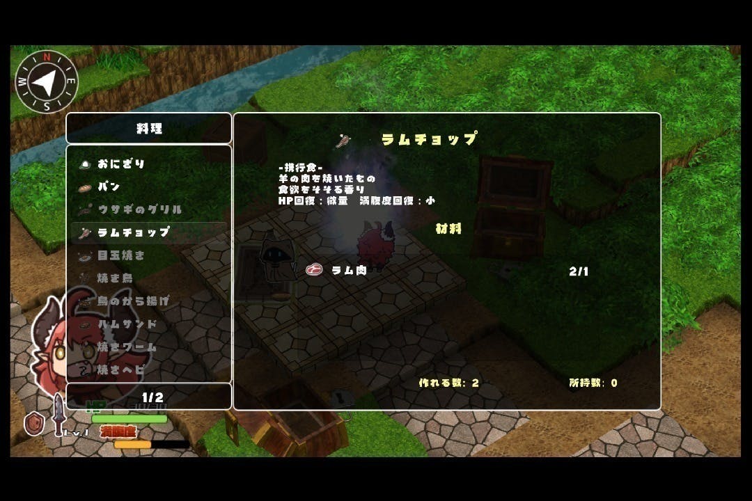 そうならないように、モンスターから得た食材で料理を作り、満腹度をやりくりして上手に旅をしましょう