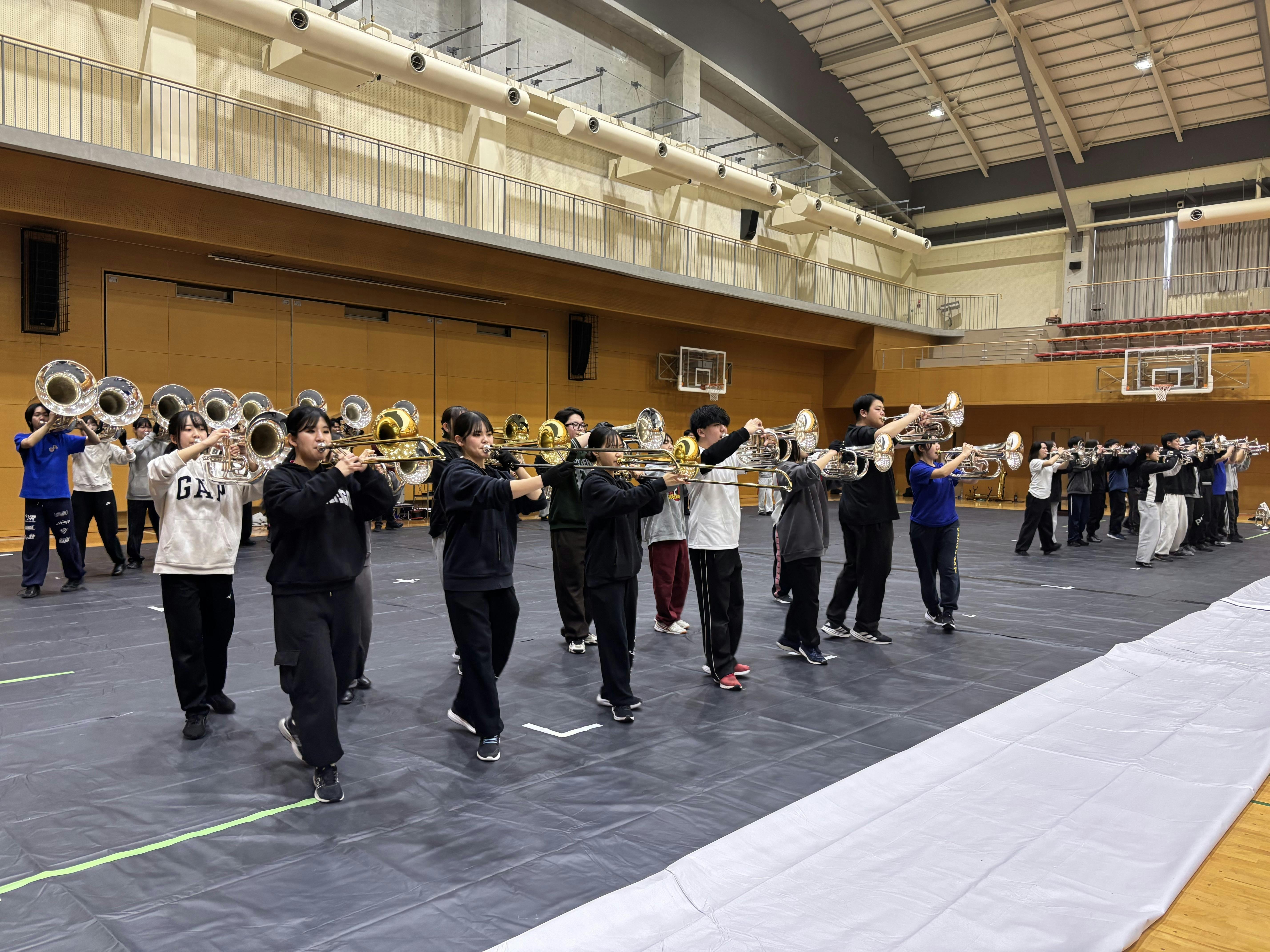 本日は、演奏会用に少人数編成へと書き換えた今年度の大会曲「EN GARDE」や、メンバーが作曲した演目のドリル練習・合奏を行いました。