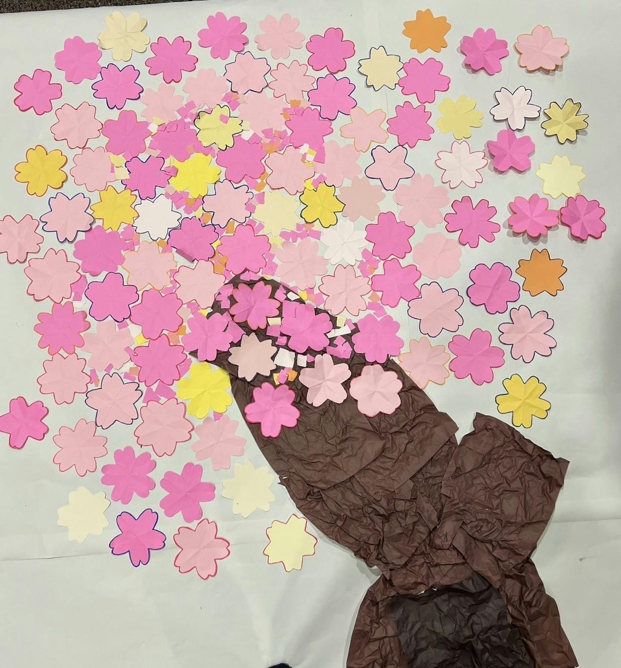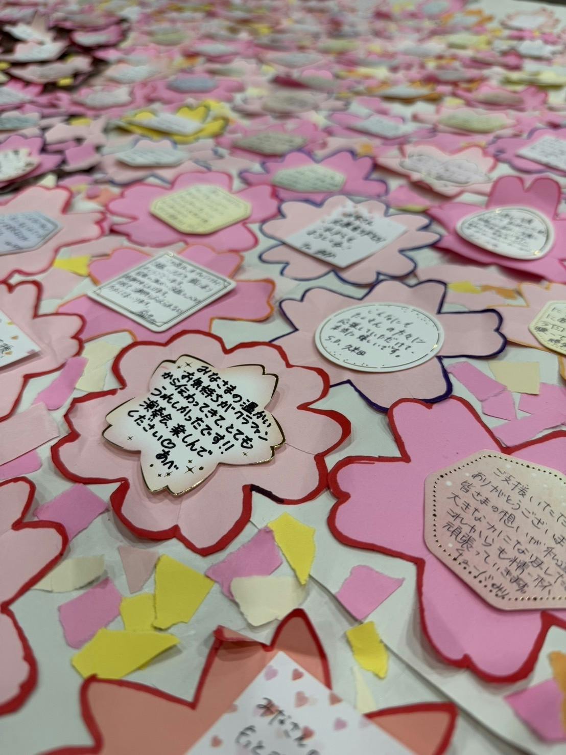 ご来場いただいた皆さまにご覧いただき、感謝の気持ちをお伝えできるよう、桜の花一つひとつに、部員・団員が手書きでメッセージを添えております。