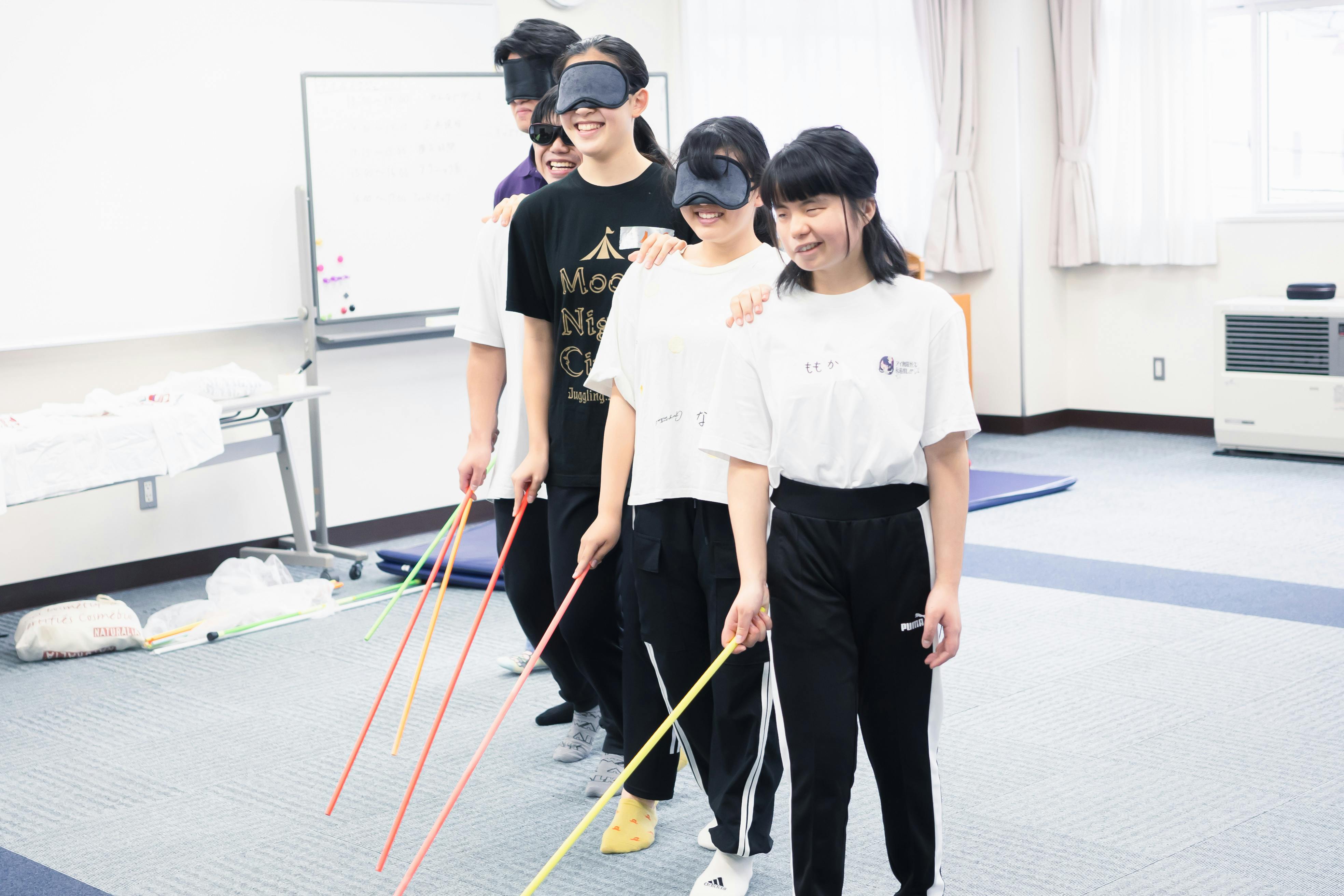 舞台経験の少ないメンバーもいるなか、基礎的なストレッチやマット運動、ジャグリング、ダンスに加え、空中芸や足長(スティルト)にも挑戦しています。