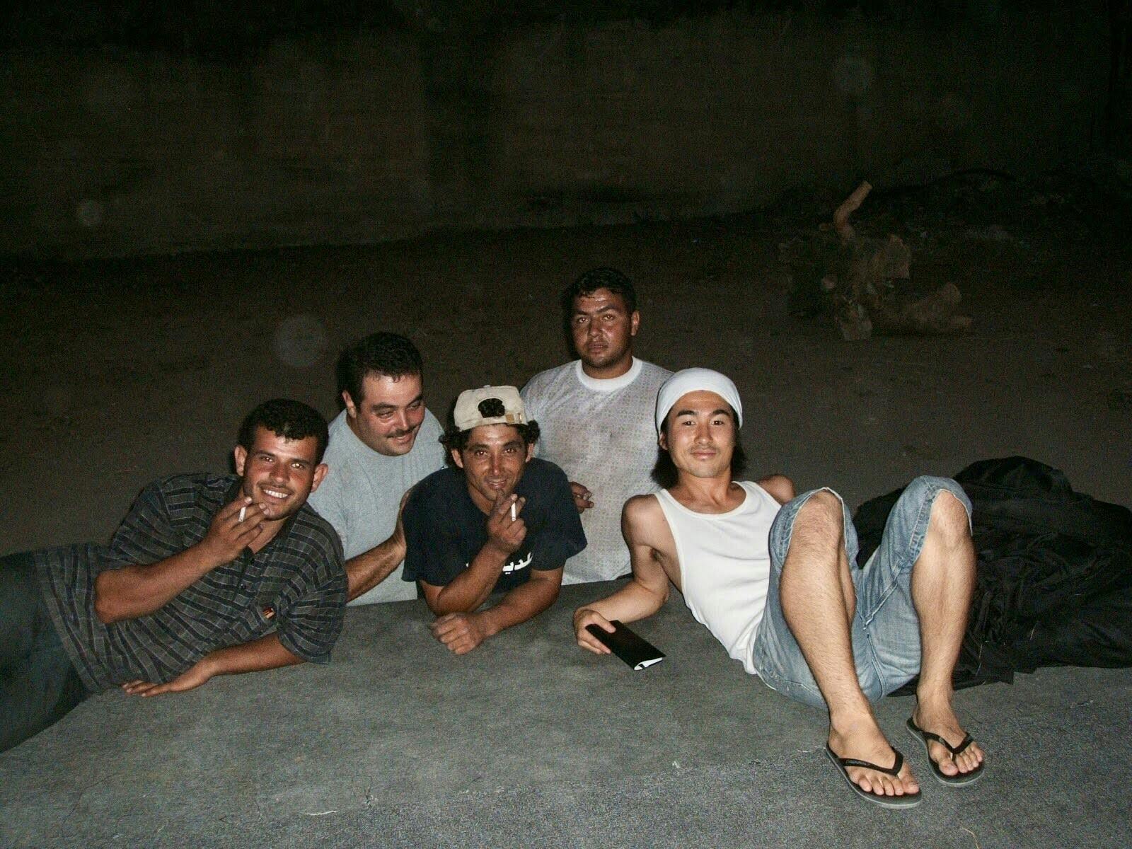 中東ツアー・レバノンでパレスティナ難民と/写真右/32歳の金井ケイスケ