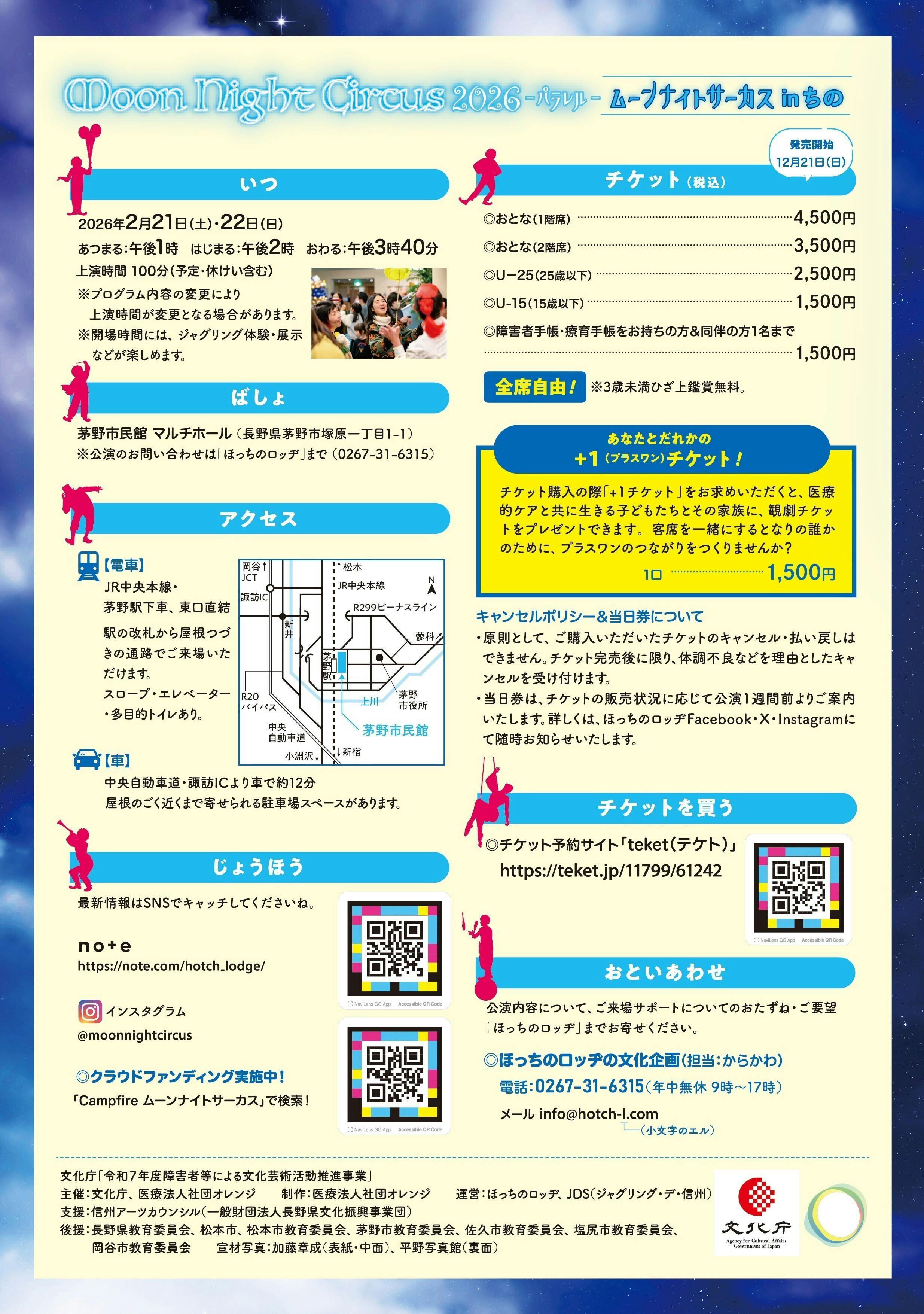 2月21日(土)・22日(日) ムーンナイトサーカス2026 ちの公演