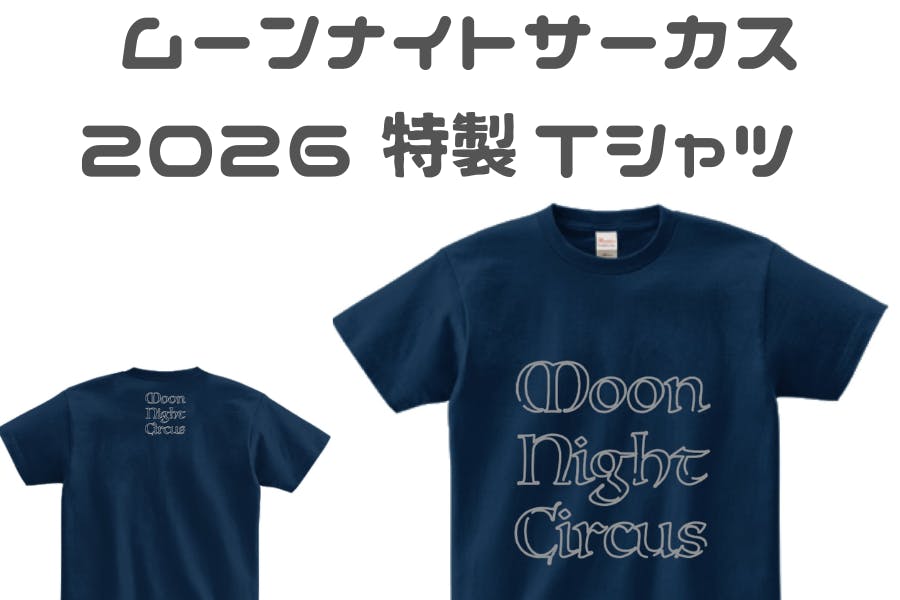 ムーンナイトサーカス2026のタイトルを、表と裏にプリントした特製Tシャツです。