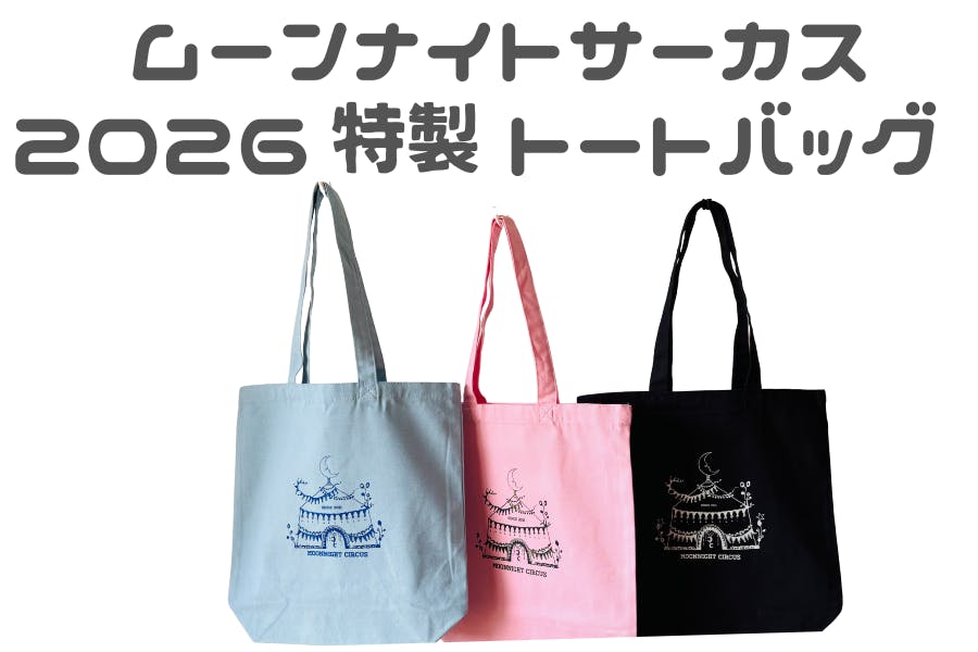 特別にデザイナーさんが描いたムーンナイトサーカスの世界観をもとに、オリジナルのトートバッグを制作しています。