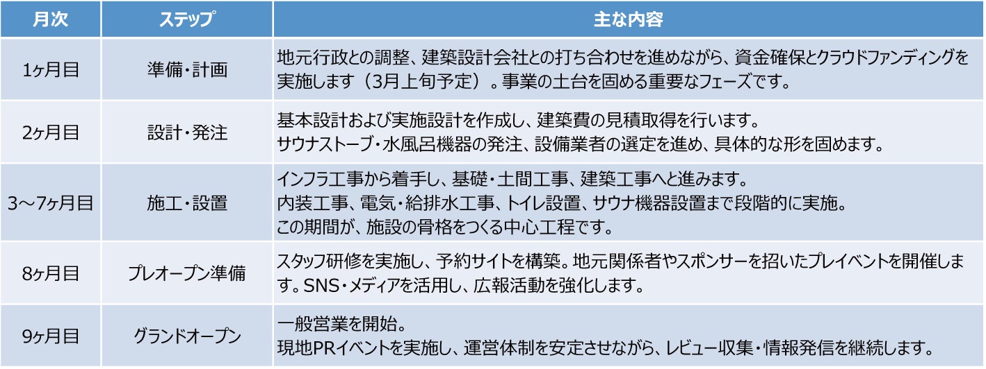 本プロジェクトは、約9か月の工程で完成を目指します。