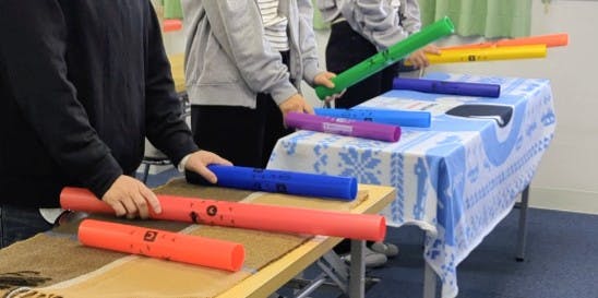 長さによって叩いて出る音が違う、カラフルな楽器です。