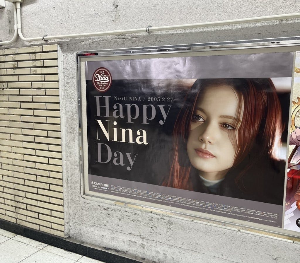支援者の皆様いつもお世話になっております。ニナ誕生日企画です。JR名古屋駅の広告場所が判明いたしましたので、下記にてご連絡させていただきます。JR名古屋駅改札内、“北”通路、10番線付近にニナちゃんのポスター広告を掲載中です!新幹線から降りてそのまま北側のJR乗り換え口から通ることも可能!北、中央、南通路がございますのでご注意ください。期間:2/9(月)〜2/15(日)ぜひアリーナ公演前後にお立ち寄りいただけますと幸いです☺︎SNS投稿の際に #HappyNinaDay のタグもぜひ!以上、何卒よろしくお願いいたします。ニナ誕生日企画