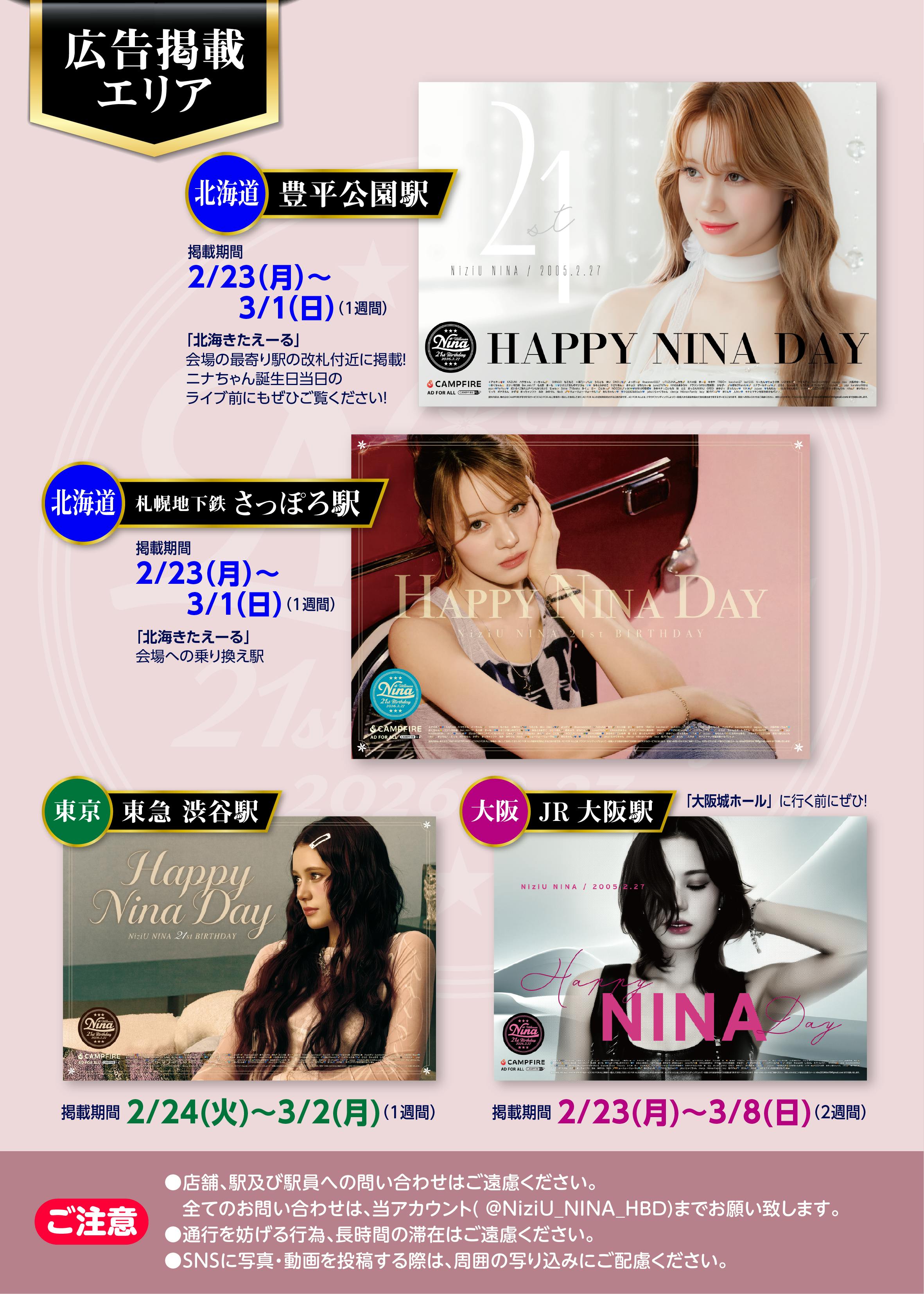 名古屋の広告はアリーナツアーの期間とニナちゃんのお誕生日の2週に分けて、掲載予定です!