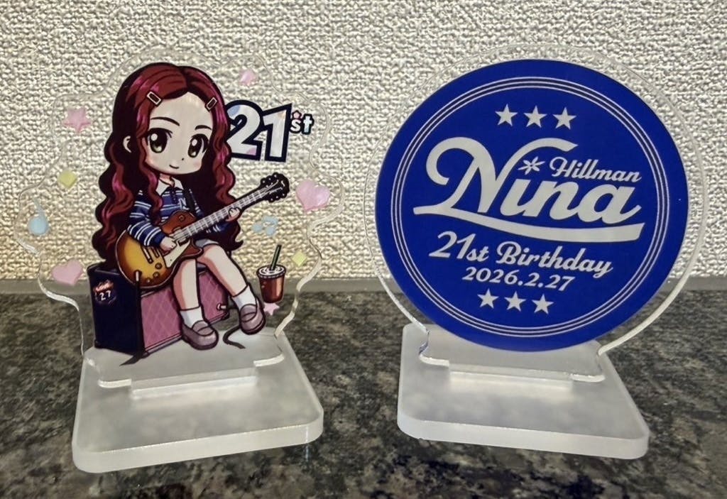 2026/02/17 23:05支援者の皆様お世話になっております。ニナ誕生日企画です。今週の21日(土)より販売の抹茶チーズケーキのコラボ特典、アクスタを公開!!ホールツアーのニナちゃんをイメージしております!また、センイルロゴもアクスタとなります!販売期間: 2/21(土)〜3月1日(日)オンラインと店舗販売がございます!オンライン購入の際は備考に『ニナコラボ』と記載ください☺︎備考の記載がない場合はアクスタの付属はございませんのでご注意のほどよろしくお願いいたします。ニナちゃんの大好きな抹茶コラボをぜひ食べていだけますと幸いです☺︎以上、引き続き何卒よろしくお願いします。ニナ誕生日企画 もっと見る