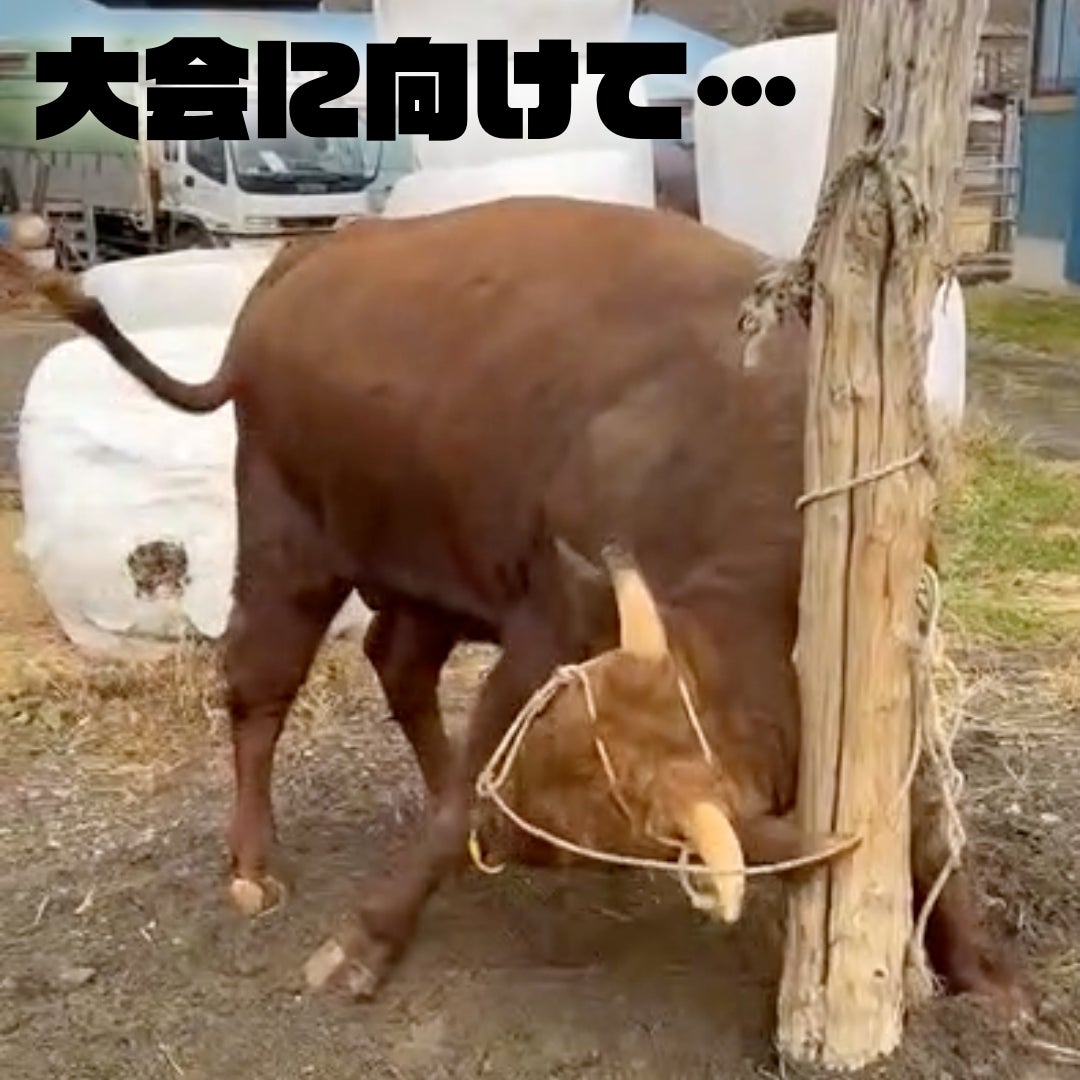 前回は大会の様子をご紹介しましたが、今回は普段なかなか見ることのできない闘牛の様子をお届けします。何をしているように見えるでしょうか…実はこれ、練習風景なんです。木を使いながら、大会に向けて少しずつ調整を行っています。大会で見せる迫力ある姿の裏には、こうした日々の積み重ねがあります。一見すると穏やかな時間にも見えますが、この時間があるからこそ、本番での力強い取り組みにつながっていきます。普段なかなか見ることのない風景ですが、闘牛の魅力はこうした日常の中にもたくさん詰まっています。もし少しでも魅力を感じていただけたら、この投稿をシェアしていただけると嬉しいです。引き続き、応援よろしくお願いいたします!
