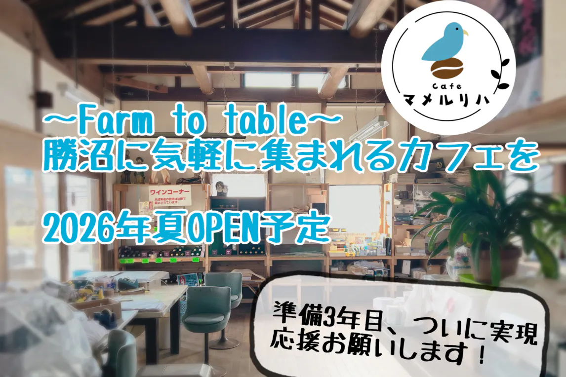 2026/03/18 12:00cafeマメルリハへの沢山のご支援本当にありがとうございます。この度大勢の方からのお声を元に、ぶどう狩り体験などができるリターンを追加させて頂きます。是非ご覧ください!OPENを心待ちにしてくださっている皆様スタッフ一同全力でOPEN準備を進めています。今後の報告にもどうぞご期待ください! もっと見る